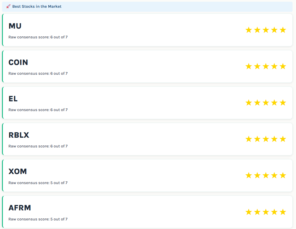 Raw Consensus Score: 6 out of 7 (Extreme Bullish momentum) (Momentum Stars)