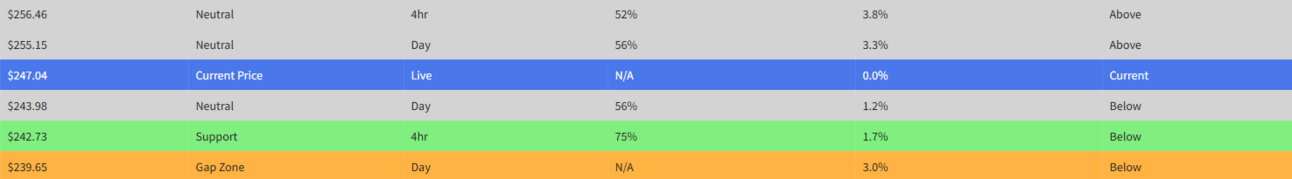 A blow-off top is a chart pattern where a stock sees a rapid, steep increase in price and volume, followed by an equally sharp decline. It often signals the end of an uptrend. We'll be monitoring the price action closely around $250 for signs of this.